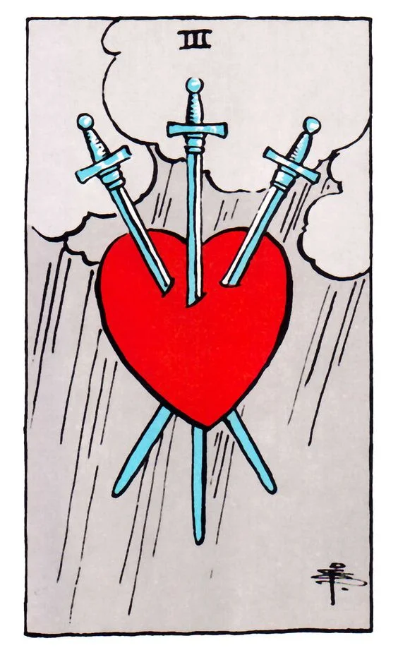 Symbols can carry enormous power. While my husband apologized profusely, I tried to catch my breath and talk myself out of my “superstition” around this card. But my logical mind wasn’t getting much traction with the rest of me because, as a long-time reader of Tarot cards, the Three of Swords had only ever shown up for me when I was feeling heartbroken or had experienced broken trust.