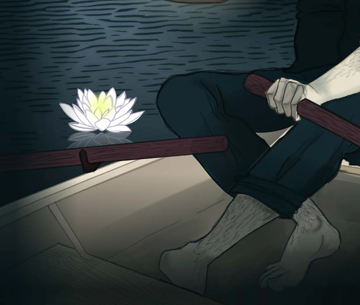 No knowledge of literature or literary history is required to use The American Renaissance Tarot. Yet the seventy-eight images could easily function as mnemonic aids to college students enrolled in a nineteenth-century American literature course. Non-standard symbols on these literary Tarot cards generally follow from symbols invoked by the writers themselves. For example, Thoreau closes his protest essay, “Slavery in Massachusetts,” with the contemplation of a white water-lily or lotus. The lotus is a universal and therefore rather generous symbol, and on the Hermit card in The American Renaissance Tarot it may be understood to represent the enlightenment that is the object of the Hermit’s quest.