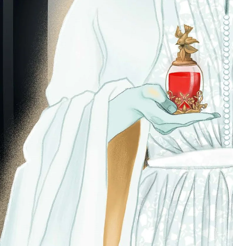 A hummingbird flutters over Emily Dickinson’s shoulder in the Priestess card; this uniquely American bird connotes a hidden magic in the way it treads the air, moving faster than human eyes can comprehend, a wonder Dickinson wrote of lovingly in her poem, “A Route of Evanescence.” The special ability of the Priestess to know (but not necessarily to reveal) the essence of things is indicated by Dickinson’s possession of a bottle of rose attar, and is inspired by her poem, “Essential oils are wrung.”
